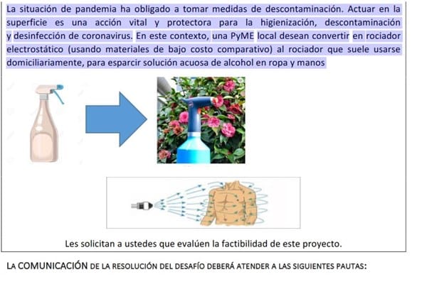 ¿Hola cómo están? ¿Podrían ayudarme con este problema? Desde ya cualquier idea que puedan brindarme se los agradeceré, como dice el problema tengo que encontrar la idea de hacer un rociador electroestatico desinfectante, mil gracias! Es para física se trata de un problema ingenieril y me veo en aprietos