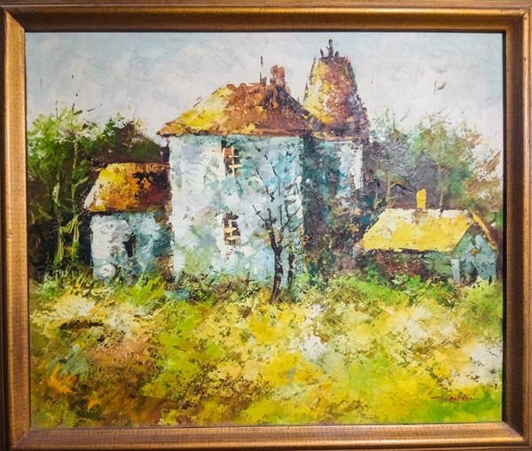 Hace un tiempo una amiga me obsequió esta pintura, la única información que me dió fue que era una herencia que había recibido de parte de una tía. El cuadro está firmado como: THOMPSON. Yo quisiera saber varias cosas, por ejemplo, más información acerca del autor, qué valor económico (estimado) podría tener actualmente esta obra, ¿qué técnica de pintura es? Etc.