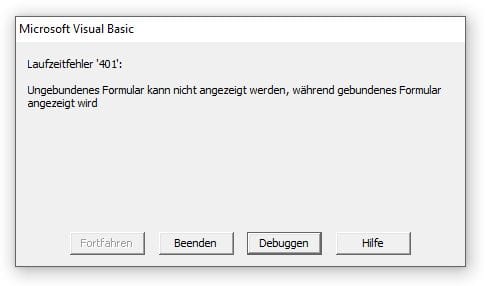 Quiero abrir un userform desde un botón que se encuentra en otra userform, pero debido a la conextividada de este último formulario no me es posible abrirlo y me da el siguiente error