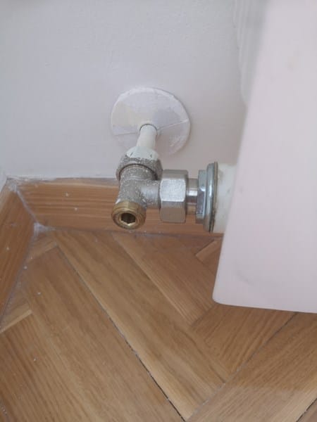 Cuando he acabado, he encendido la calefacción y uno de ellos (el pequeño) no me funciona. Antes funcionaba perfectamente en el otro lado. Además, cabe indicar que he abierto detentor y llave de entrada de agua. Ni siquiera se calienta la tubería que sale de la pared y eso es lo que me ha parecido muy raro.