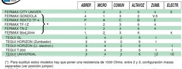 Tengo un tegui t200 y quiero cambiarlo por un fermax no se la equivalencia de colores de los cables.