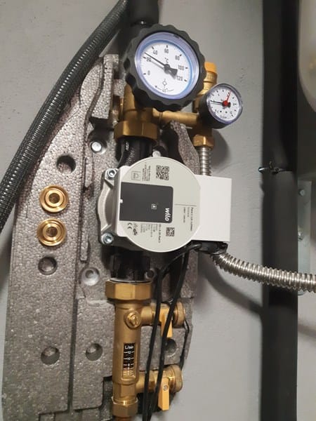 Ahora ya no funciona en absoluto. La placa coge temperatura, la bomba arranca, pero no calienta el agua del depósito. Parece que el primario no circula en absoluto. El indicador de caudal ni se mueve. Si toco la parte de arriba de la bomba (y leo el termómetro) está a lo mejor caliente a 60 grados. Debajo de la bomba se nota parecido. 50cms más abajo el tubo está frío
