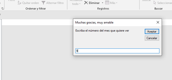 Cuando voy a abrir el formulario me pregunta que que mes quiero ver. Escribo por ejemplo 9