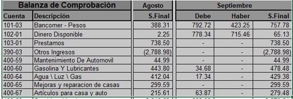 Te agradezco mucho tu ayuda en este proyecto. En contabilidad, se utilizan claves de cuentas para capturar la actividad de los diferentes rubros; cada cuenta tiene dos campos para registrar los importes asignados a ésta: Debe, en el que se registran los importes de "Débito" o "Cargo"; y Haber, en el que se registran los importes de "Crédito" o "Abono"; no se utilizan cantidades negativas. El saldo de cada mes es resultado de sumar el total de cargos y restarle a éste el total de abonos. Incluso se utilizan Saldo deudor y Saldo acreedor.
