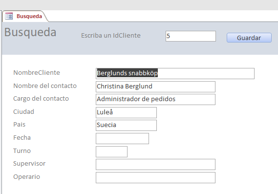 Entonces que me busque la informacion según el numero de orden, que me ponga la información en los campos correspondientes y como todavía falta por llenar los demás campos . Entonces lo termino de llenar y que al dar guardar se llene en la misma del numero de orden,