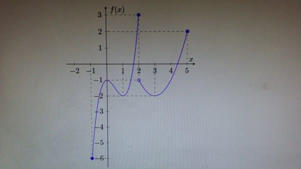 Tengo que hallar los máximos absoluto y local y los mínimos absoluto y local. Yo lo analicé así pero no sé si está bien o mal: