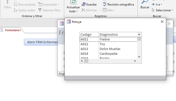 Selecciono A013 Dolor de muelas y al cerrar el formulario