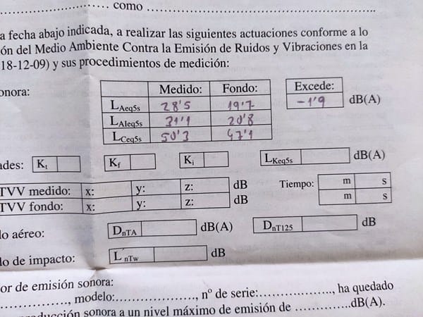 El cual no se interpretar, pero me dijeron que no superaba el límite de decibelios durante el día, que por la noche seguramente lo superaría y que llamase a la policía para que viniesen de noche.