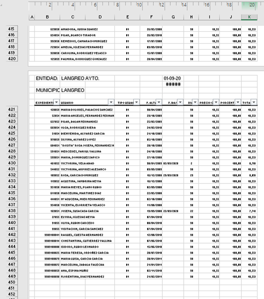 Tengo un excel con varias hojas todas salen correctamente pero en la ultima a la hora de imprimir deja un espacio en blanco antes de poner los datos como les muestro en esta foto