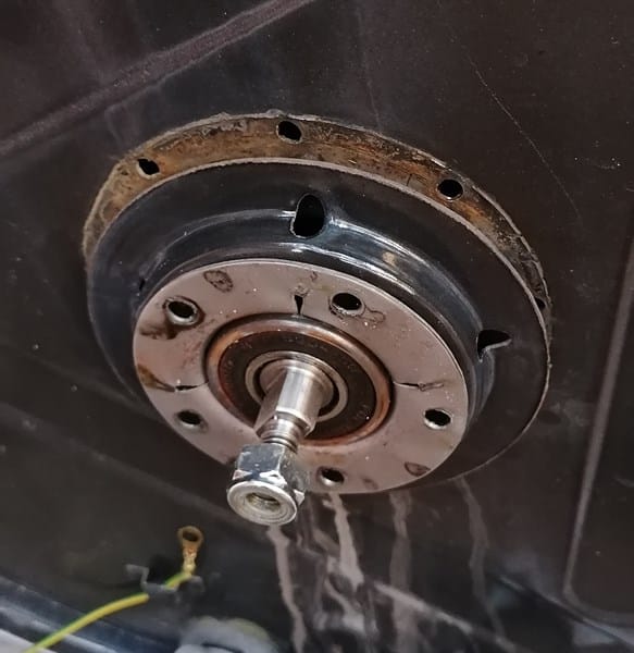 Se ha soltado el tambor de la lavadora de carga vertical y quería saber si es porque las dos piezas que se ven en la foto deberían estar pegadas o soldadas y se han separado.
