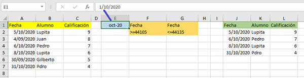 Es decir, que busque información en una columna, y que la ponga en otra poniendo solo los valores únicos, de determinado mes, en este caso del mes de octubre