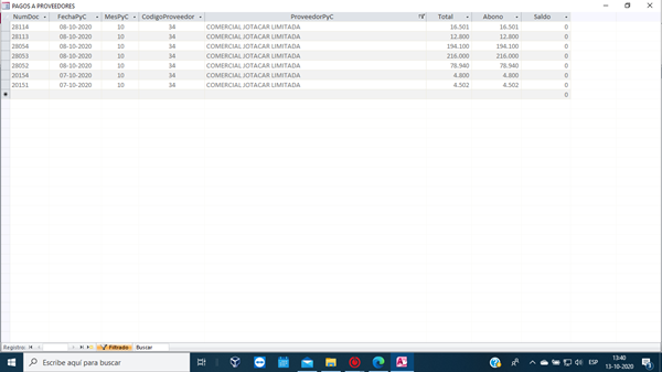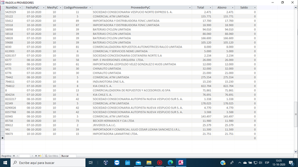 Y cada vez que filtre por alguna de las columnas, En este caso "ProveedoresPyC" me arroje la suma total de las tres columnas "Total", "Abono" y "Saldo" solo de este proveedor