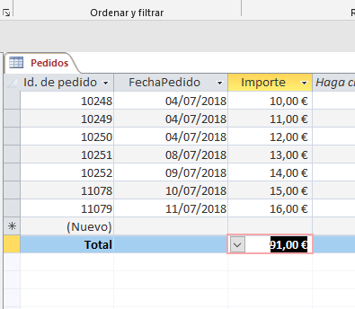Añadir fila de totales hoja de datos en Formulario