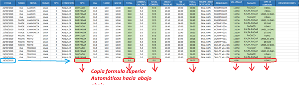 Columnas A hasta Z, Aumentar formulas automaticos a la siguiente celda