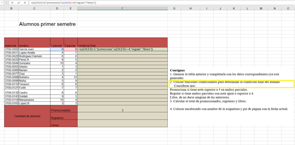 Tengo que resolver el punto 2 (que esta remarcado en amarillo), con el uso de los condicionales, indudablemente aplico mal la formula, ¿cuál seria la correcta?.