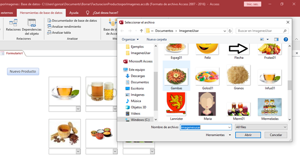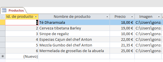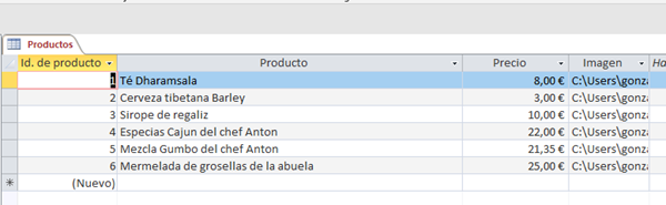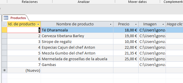 Muy pocas pistas das, pero... Voy a aprovechar una base que ya tenía hecha. Si tengo la tabla Productos, donde le he añadido un campo Foto( por ponerle un nombre)