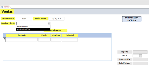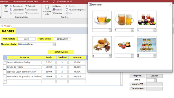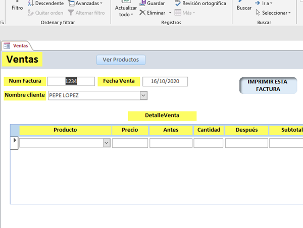 Si tengo el formulario Ventas con un subformulario DetalleVenta donde se van a reflejar los productos