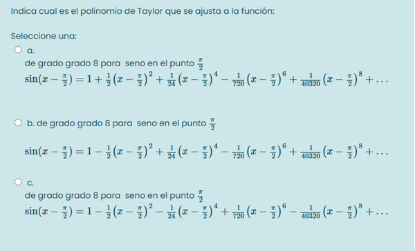 Cual de estas tres opciones es la correcta de acuerdo al polinomio de Taylor