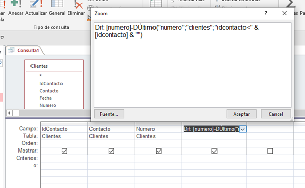 Public Function Diferencia(CampoARestar As String) As Variant Dim regAnterior As Variant If IsNull(CampoARestar) Then Exit Function regAnterior = Nz(DMax(Replace(CampoARestar, ",", "."), "TPrecio", "Id<" & Id), 0) If regAnterior = 0 Then Diferencia = regAnterior Else Diferencia = CampoARestar - regAnterior End If End Function
