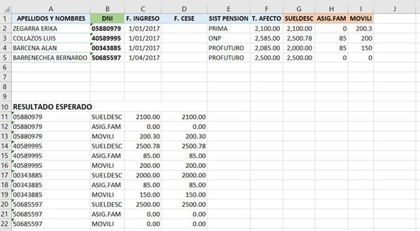 Deseo su ayuda con la creación de una macro o fórmula para obtener el resultado según imagen que adjunto: