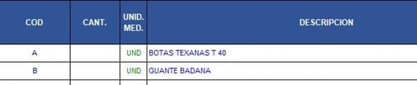 Dim und, descripcion, codigo, rango As Variant
