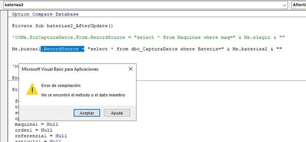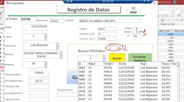 Entonces quiero que, cuando se seleccione en el campo BATERÍA (por ejemplo se selecciona el numero 2) al desplegar la lista solo salgan los datos de la BATERÍA NUMERO 2...