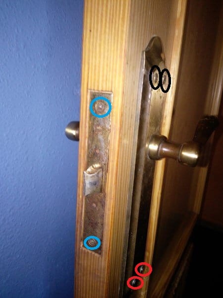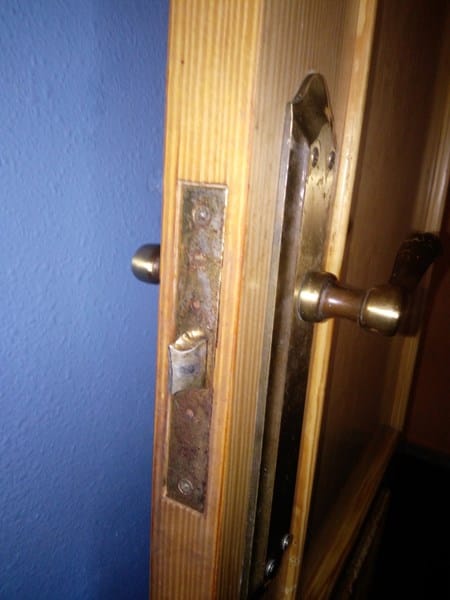 Es una puerta de cuarto normal con manivela, el pestillo se ha roto y no funciona el mecanismo.