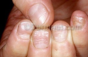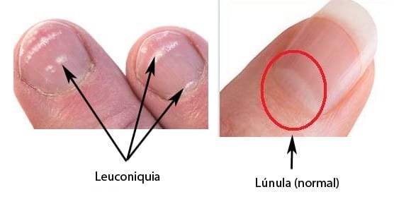Leuconiquia por ejemplo es un estado que suele aparecer porque se ha producido con anterioridad un proceso inflamatorio o un traumatismo en la matriz de la uña que provoca que la queratinización sea anormal.