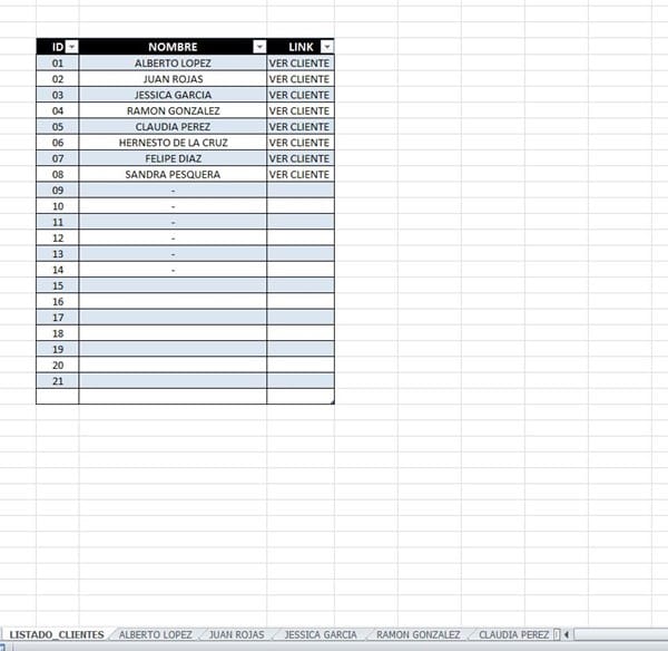 Necesito que el nombre de un cliente ingrese como hipervínculo tomando el código como nombre de hoja donde esta su cuenta.