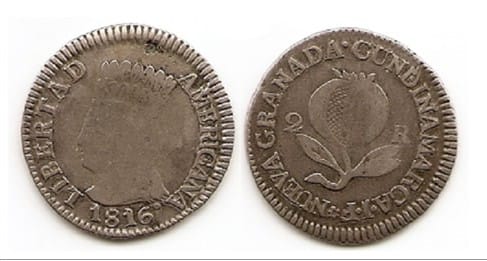 Moneda Anverso: Libertad Americana 1816, Reverso: Nueva granada Cundinamarca