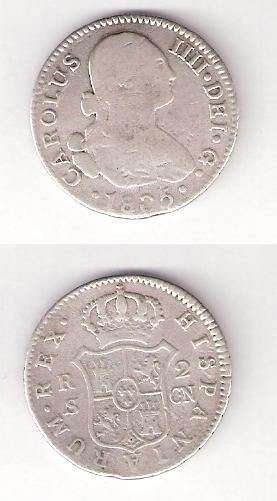 Moneda Anverso IIII DEI G 1805 CAROLUS, Reverso: Hispanarium rex en el centro un escudo y a sus lados RS 2CN,
