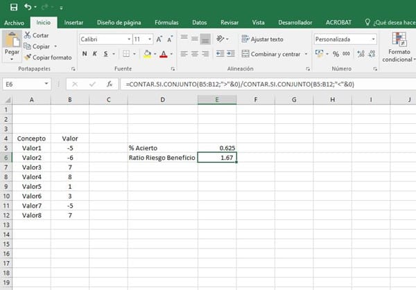 - El ratio riesgo/beneficio (dividir la suma total de las operaciones positivas entre la suma total de las negativas)