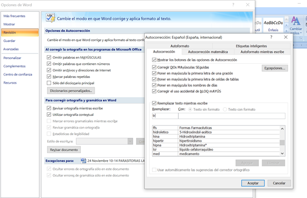 ¿Existe atajo de teclado para "opciones de autocorreción" en office Word?