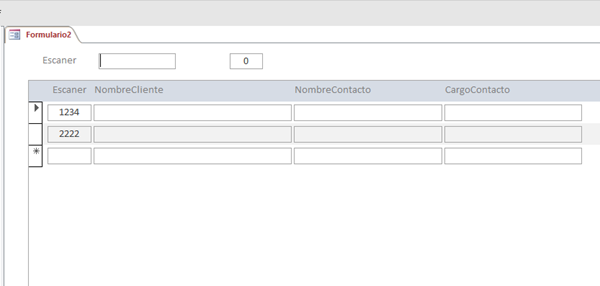 He creado un formulario de captura de datos en la cual en el cuadro de texto se ingresan datos (series con escáner lineal) y al dar al botón guardar se guarda el dato y a su vez se ve en el subformulario de abajo.