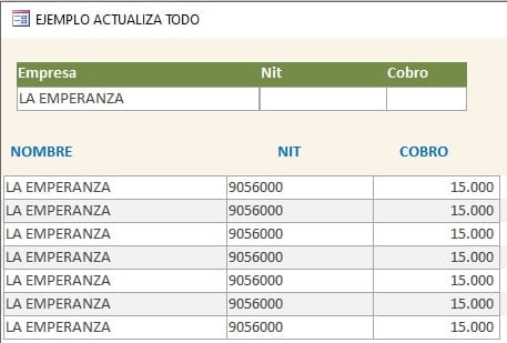 Me gustaría que el usuario pusiera en el primer registro, en el campo "ubicación", empresa (por ejemplo), y automáticamente los 94 registros tuviesen el valor empresa en el campo "ubicación", y así con todos los campos.