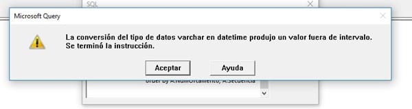 Al importar la tabla a excel me arroja el error mostrado en la imagen.
