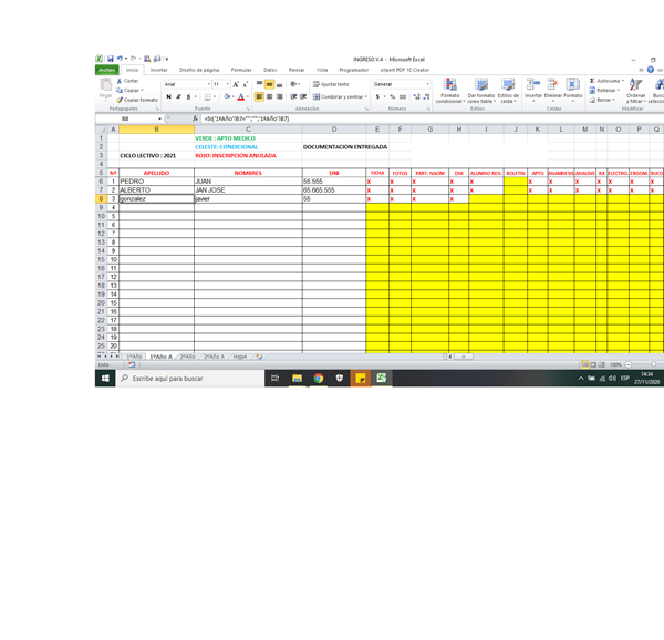 Aquí dejo la macro que se ejecutará estando en la hoja que debe ser pasada, o sea 1° o 2° año. La col B no debiera tener más contenido (ni notas ni comentarios) más allá de los datos de los alumnos.