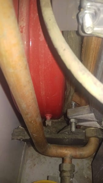¿Puede ser el vaso de expansión? Os adjunto una foto a ver si alguien me puede indicar por donde pueden ir los tiros. Había leído (aquí mismo creo) que si presionaba la válvula de salida del vaso y salía agua es que había que cambiarlo y que si salía poco aire o nada podía probar a llenarlo con una bomba de bici mismo.