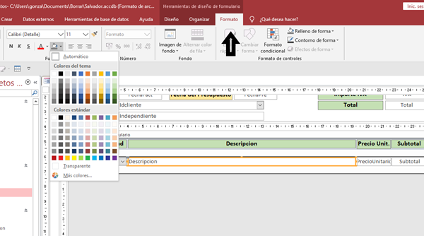 Tengo una Base de Datos en Access donde el subformulario principal es un poco extenso y recoge tres momentos del proceso de facturación. Necesito separar por colores estas tres etapas asignándole un color a cada grupo de columnas.