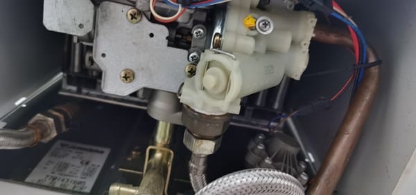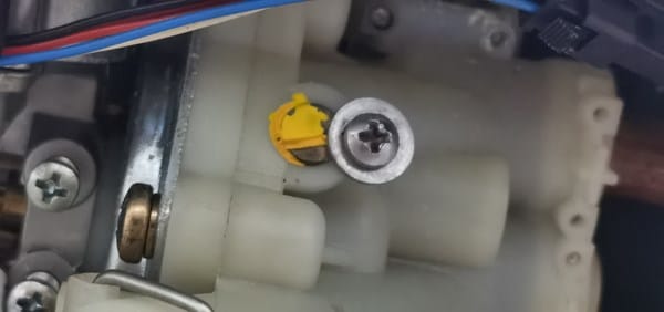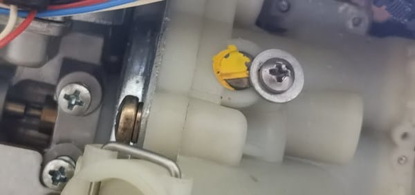 Por donde pierde agua es cerca del tornillo que veis que pisa algo amarillo.