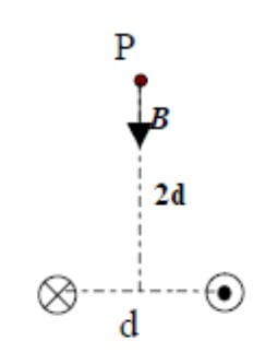 4) Dos alambres muy largos, rectos y paralelos, a una distancia d uno del otro, conducen corrientes en direcciones opuestas. ¿Cuál es el campo magnético en un punto equidistante a los alambres, y a una distancia 2d de cada uno?