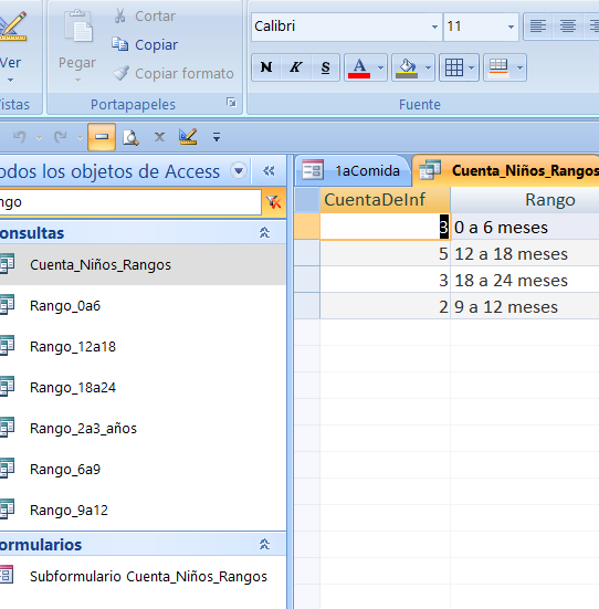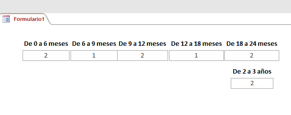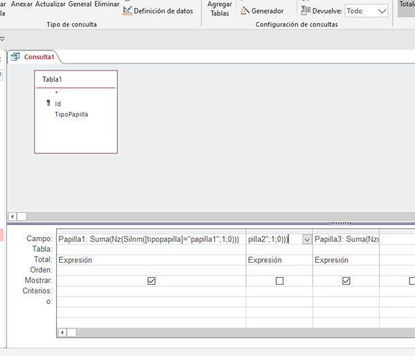 Tengo una consulta que cuenta el total de registros del campo "papilla _1", otra cuenta el total del campo "papilla_2" y así unas cuantas.