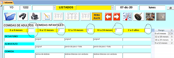 Me interesa a través de un cuadro de lista visualizar sólo la cuenta de "papilla_1", o cualquier otra, todo va en relación a la las edades y necesidades de los bebés.