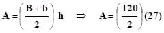 Hallar el área del siguiente trapecio si se sabe que su área es igual a la suma de la base mayor con la base menor,dividiendo el resultado entre dos. Luego, multiplicando todo por la altura.