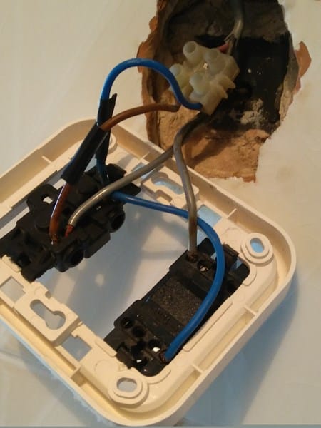 Necesito arreglar una conexión doble (interruptor para lámpara y enchufe). Creo que debo tener algo mal en los cables porque la cosa no me funciona.
