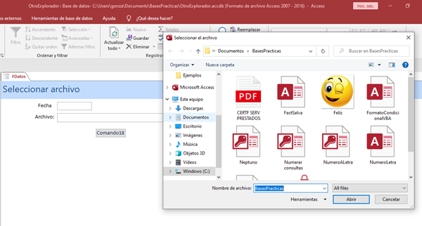 Se abre un explorador para que localice el archivo en cuestión. Una vez localizado, en una carpeta determinada, hago clic sobre el archivo para seleccionarlo