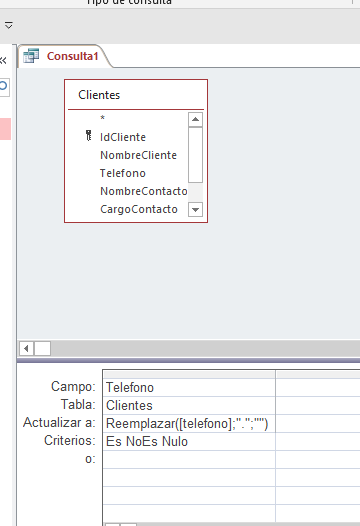 Necesito eliminar del Campo: TELÉFONO dentro de la Tabla: CLIENTES todos los caracteres que no sean números.