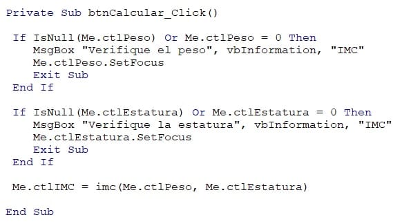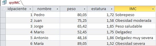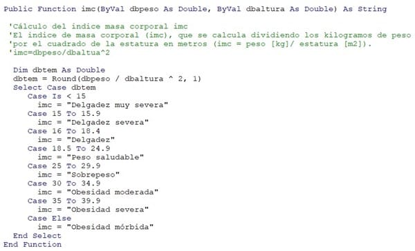 Estoy calculando el Índice de Masa Corporal, hasta hay ningún problema, el tema viene en todas las condiciones que se han de tratar.