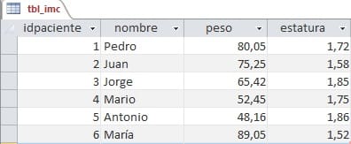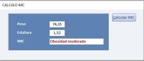 El índice de masa corporal lo saco al multiplicar la altura al cuadrado (que esta en una caja de texto ) por el peso (que esta en otra caja de texto) y el resultado lo coloco en una tercera caja texto.