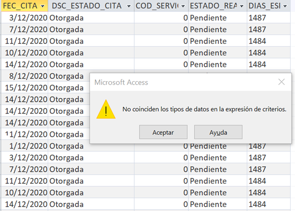 No coinciden los tipos de datos en la expresión de criterios en consulta Access